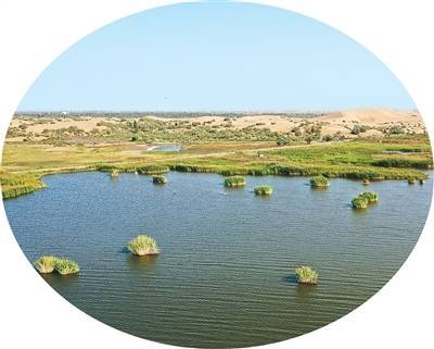 位于库布其沙漠里的七星湖景区。 新华社记者 李志鹏摄