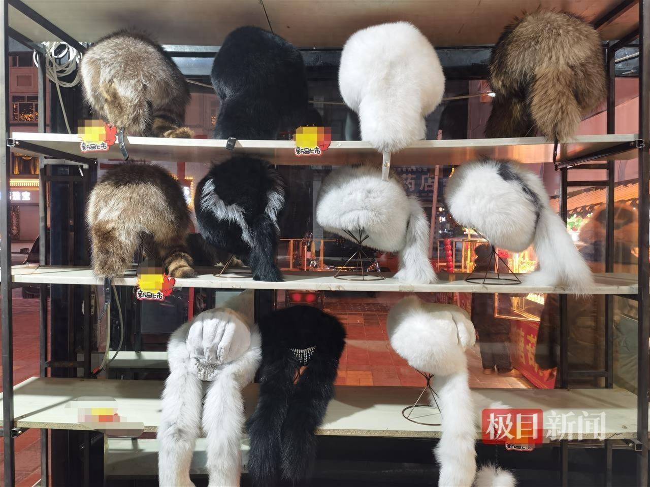 店铺摆放的御寒帽子