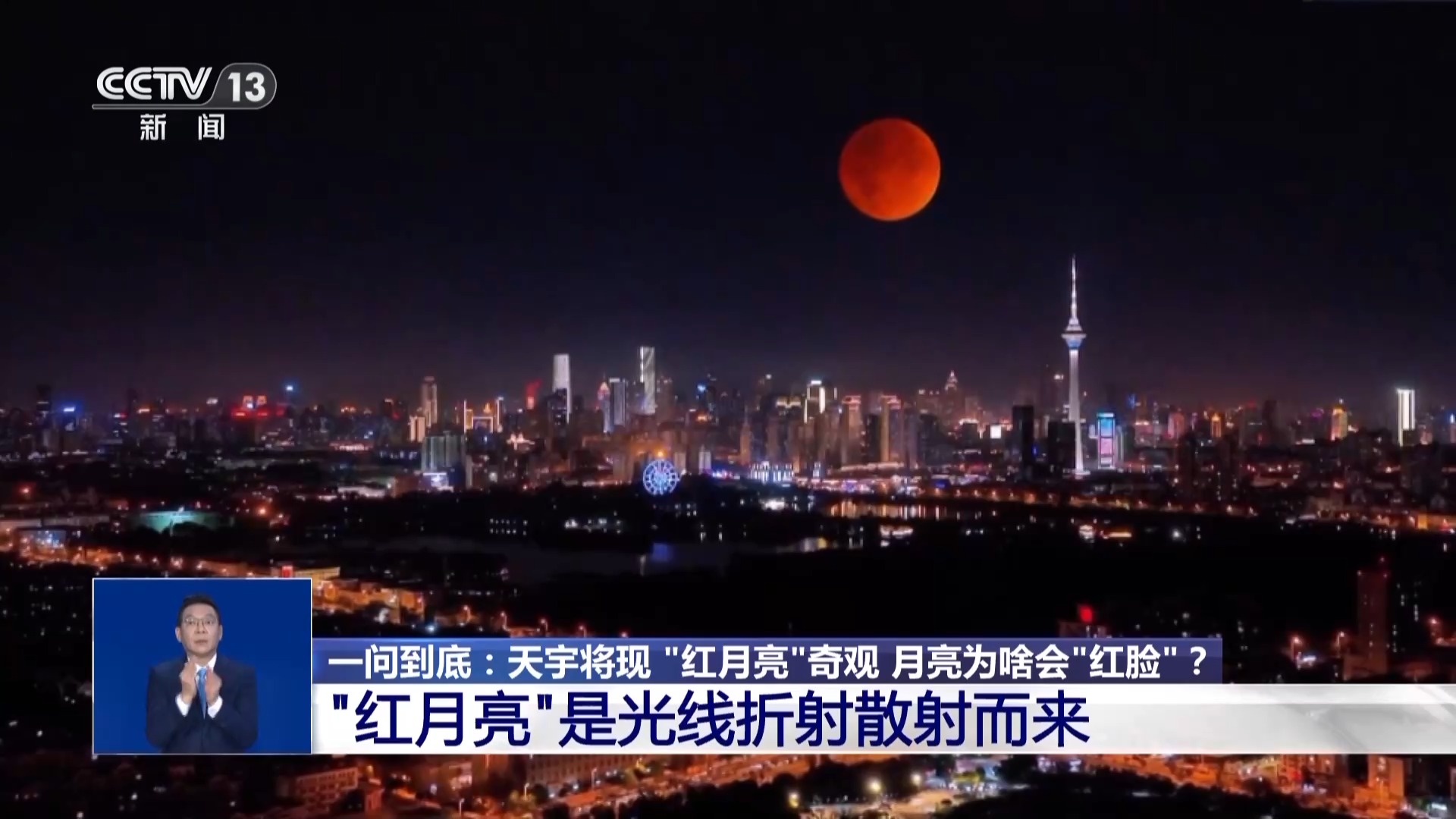 中国科学院紫金山天文台科普主管 王科超:这段时间只要天气允许,我们肉眼就可以看到这轮“红月亮”,并且在这一时间月亮的地平高度相对较高,不易受地面物体的遮挡,所以在空地上,在自家的阳台上,就可以欣赏到这一轮精彩天象。
